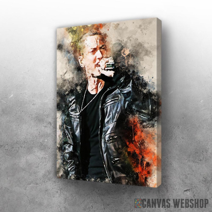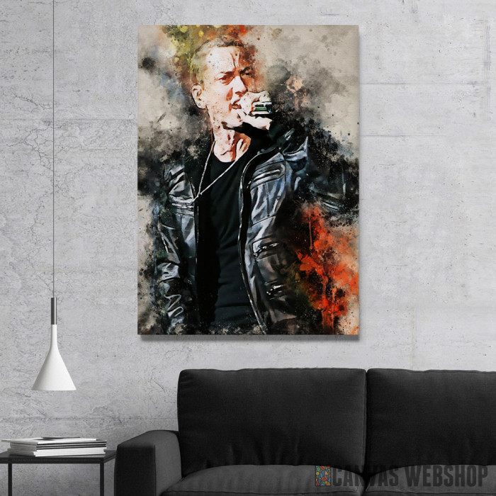 Eminem colored je slika odštampana na kvalitetnom pamučnom platnu koje je zategnuto na ram od bukovog drveta. Slika Eminem colored je dostupna u različitim dimenzijama.