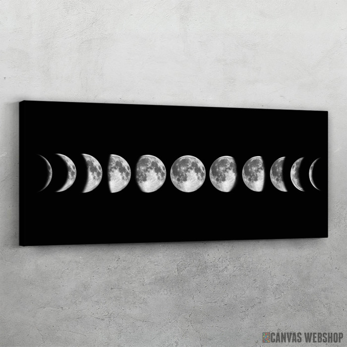 Faze meseca je slika odštampana na kvalitetnom pamučnom platnu koje je zategnuto na ram od bukovog drveta. Slika Faze meseca je dostupna u različitim dimenzijama.