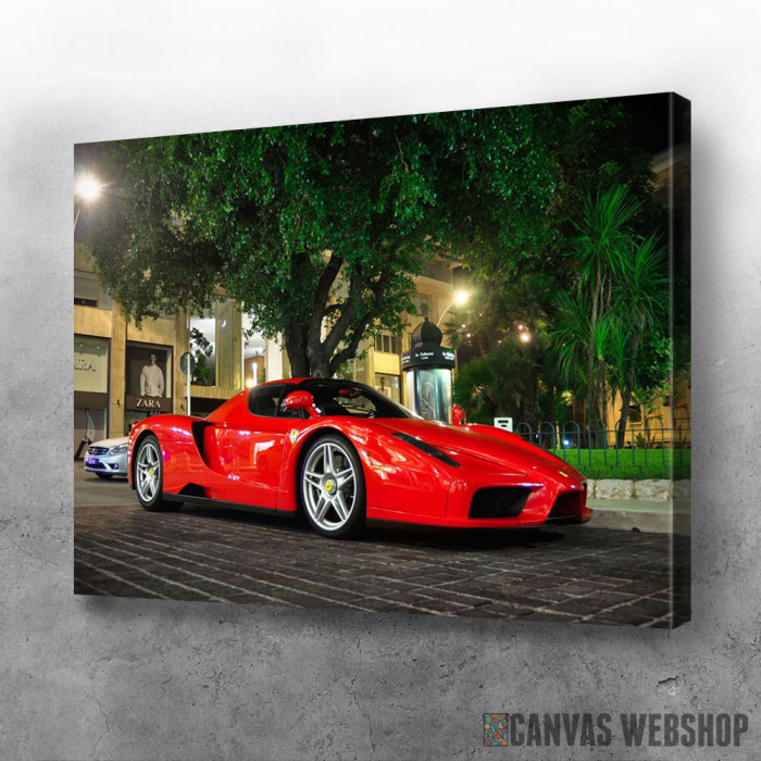 Ferrari Enzo crveni je slika odštampana na kvalitetnom pamučnom platnu koje je zategnuto na ram od bukovog drveta. Slika Ferrari Enzo crveni je dostupna u različitim dimenzijama.