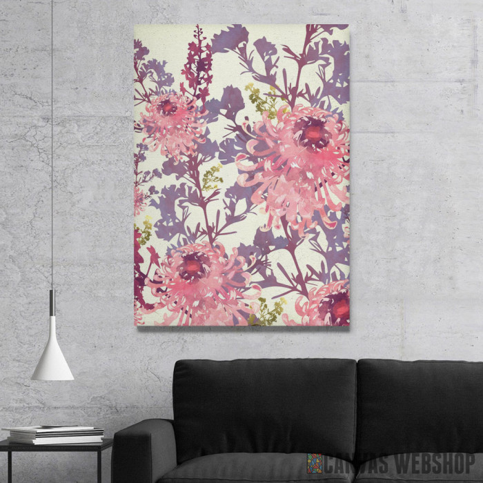 Floral II je slika odštampana na kvalitetnom pamučnom platnu koje je zategnuto na ram od bukovog drveta. Slika Floral II je dostupna u različitim dimenzijama.