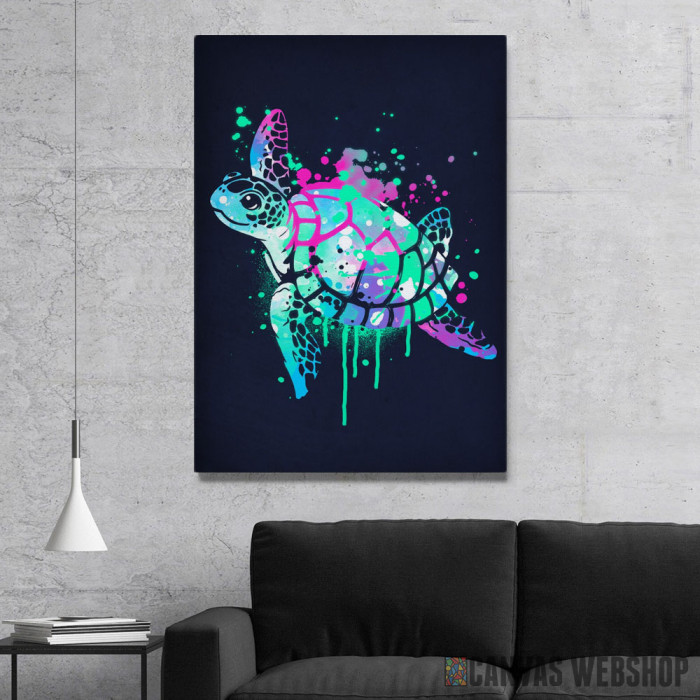 Fluo sea turtle je slika odštampana na kvalitetnom pamučnom platnu koje je zategnuto na ram od bukovog drveta. Slika Fluo sea turtle je dostupna u različitim dimenzijama.