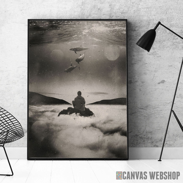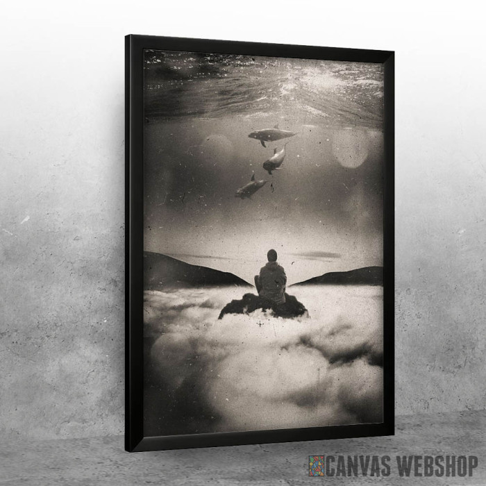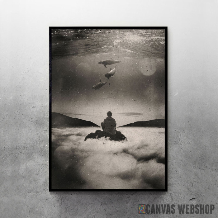 Flying or Swimming je poster odštampan na papiru koji uokviruje elegantan drveni ram sa staklom. Uramljeni poster je dostupan u različitim dimenzijama.