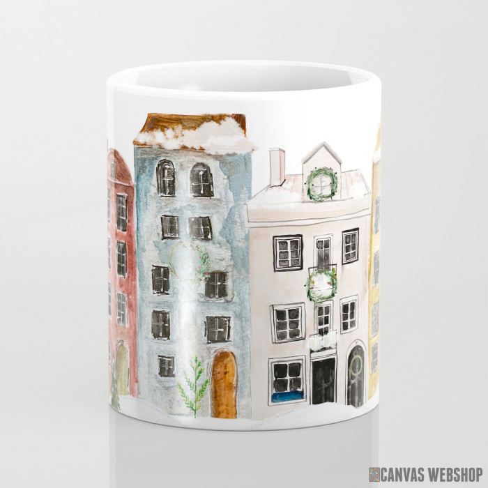 Keramička šolja sa slikom Božič u selu.