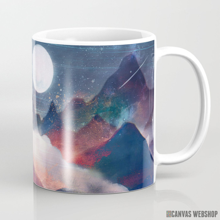 Keramička šolja sa slikom Planinsko jezero pod zvezdama.