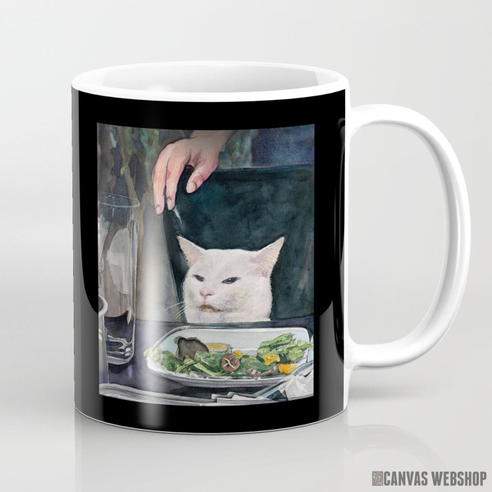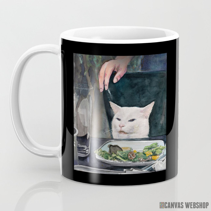 Keramička šolja sa slikom Žena viče na mačku.