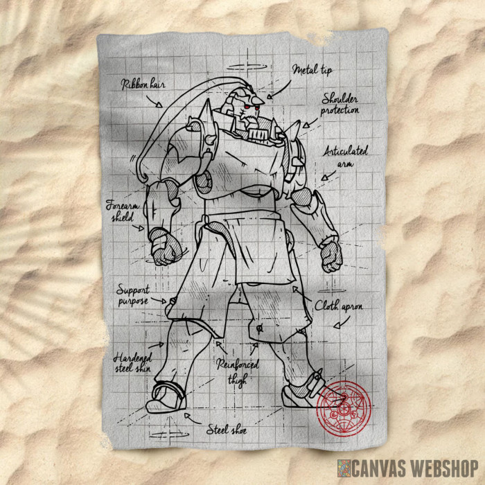 Materijal 60% pamuk (frotir 400g/m2) i 40% poliester (mikrofiber). Štampa je sa prednje strane, odnosno na mikrofiberu, celom površinom. Tehnika štampe je digitalna sublimacija bojama na vodenoj bazi. Urađen je porub po obodu.