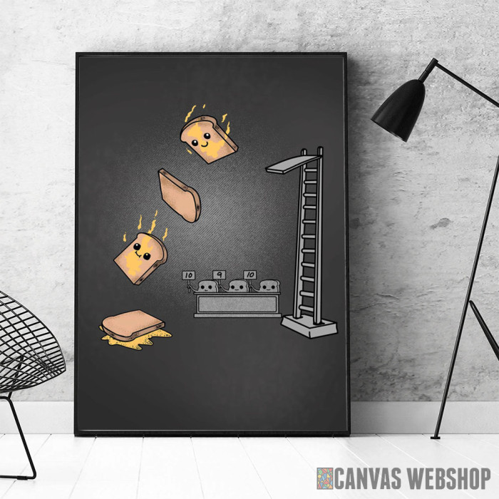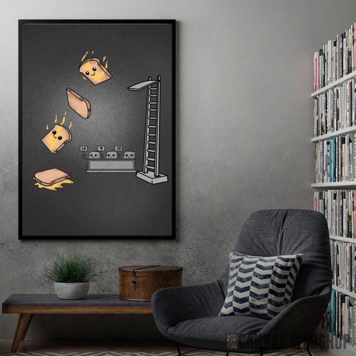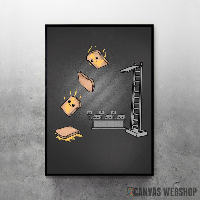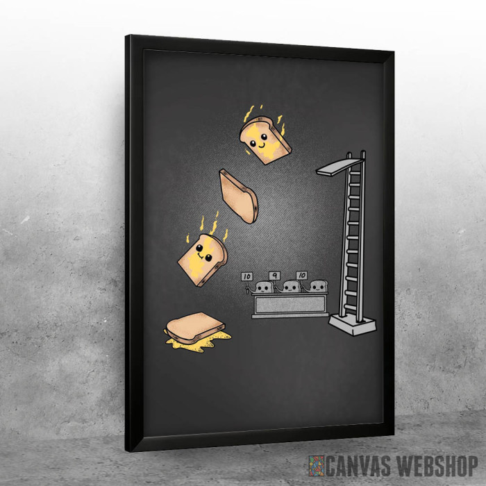 Funny Toast Tower Jump je poster odštampan na papiru koji uokviruje elegantan drveni ram sa staklom. Uramljeni poster je dostupan u različitim dimenzijama.