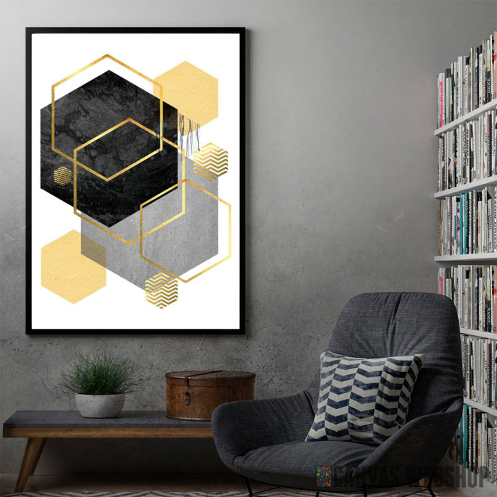 Geometrijski oblici je poster odštampan na papiru koji uokviruje elegantan drveni ram sa staklom. Uramljeni poster je dostupan u različitim dimenzijama.