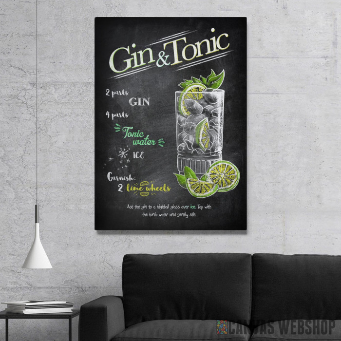 Gin and Tonic je slika odštampana na kvalitetnom pamučnom platnu koje je zategnuto na ram od bukovog drveta. Slika Gin and Tonic je dostupna u različitim dimenzijama.