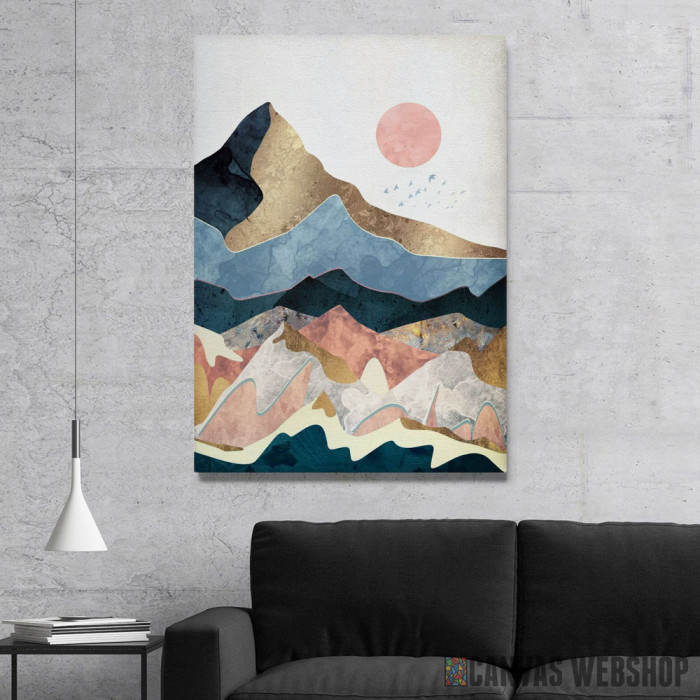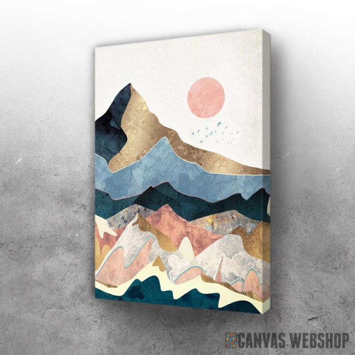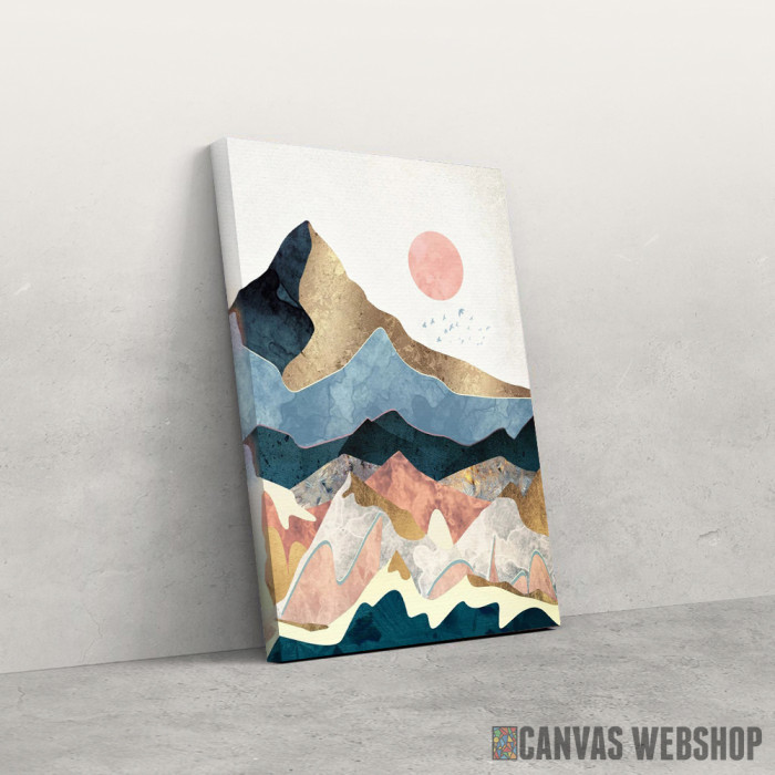 Golden Peaks je slika odštampana na kvalitetnom pamučnom platnu koje je zategnuto na ram od bukovog drveta. Slika Golden Peaks je dostupna u različitim dimenzijama.