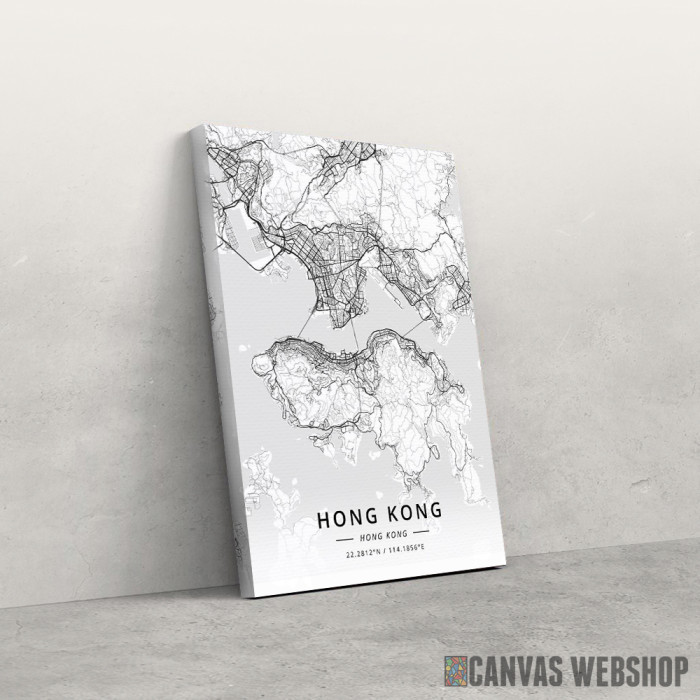 Hong Kong mapa - white je slika odštampana na kvalitetnom pamučnom platnu koje je zategnuto na ram od bukovog drveta. Slika Hong Kong mapa - white je dostupna u različitim dimenzijama.