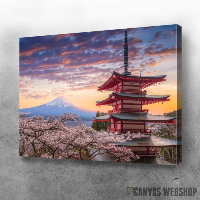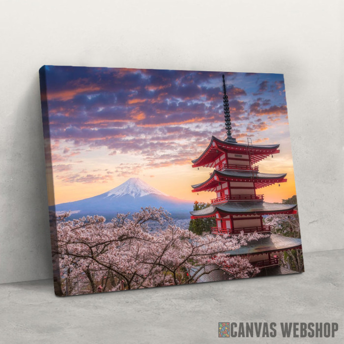 Hram u Japanu sa pogledom na Fudzi je slika odštampana na kvalitetnom pamučnom platnu koje je zategnuto na ram od bukovog drveta. Slika Hram u Japanu sa pogledom na Fudzi je dostupna u različitim dimenzijama.