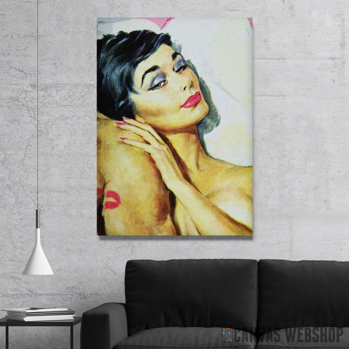 In bed with lover je slika odštampana na kvalitetnom pamučnom platnu koje je zategnuto na ram od bukovog drveta. Slika In bed with lover je dostupna u različitim dimenzijama.