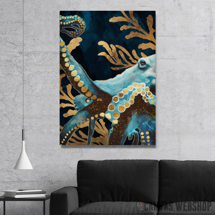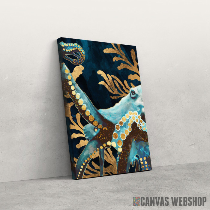 Indigo Octopus je slika odštampana na kvalitetnom pamučnom platnu koje je zategnuto na ram od bukovog drveta. Slika Indigo Octopus je dostupna u različitim dimenzijama.