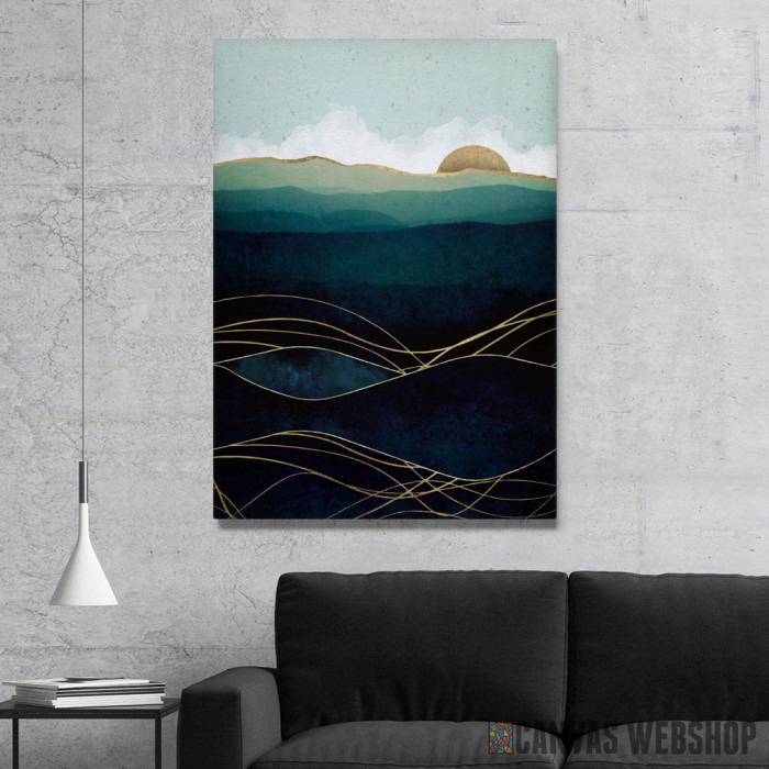 Indigo Waters je slika odštampana na kvalitetnom pamučnom platnu koje je zategnuto na ram od bukovog drveta. Slika Indigo Waters je dostupna u različitim dimenzijama.