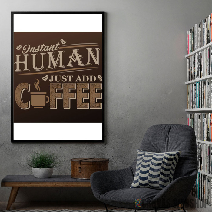 Instant Human Coffee je poster odštampan na papiru koji uokviruje elegantan drveni ram sa staklom. Uramljeni poster je dostupan u različitim dimenzijama.