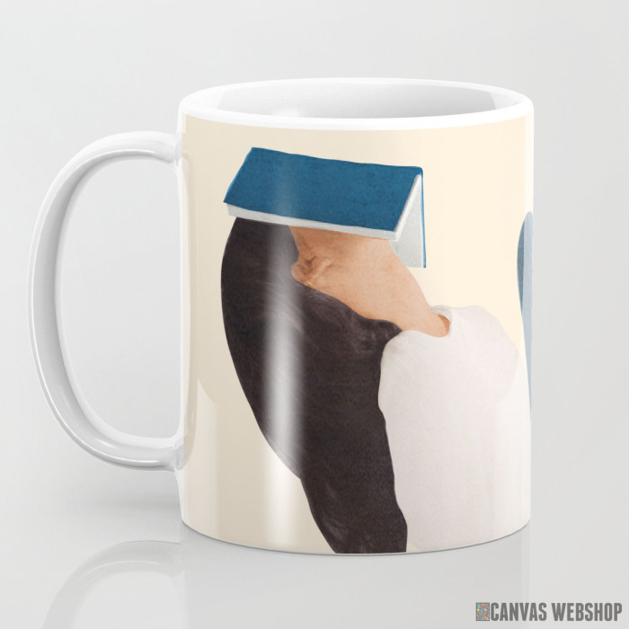 Keramička šolja sa slikom Izgubljen u knjigama.