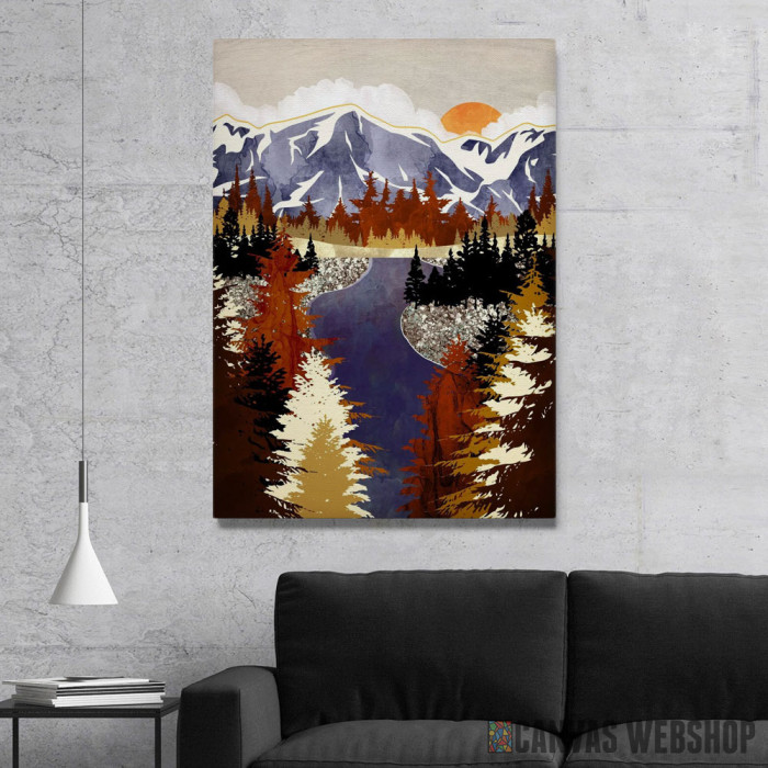 Jesen obojila šumu je slika odštampana na kvalitetnom pamučnom platnu koje je zategnuto na ram od bukovog drveta. Slika Jesen obojila šumu je dostupna u različitim dimenzijama.