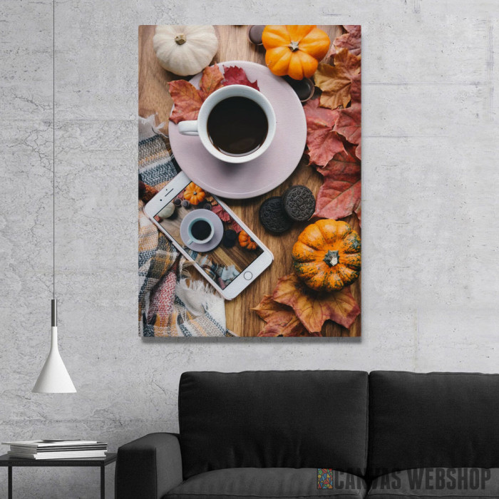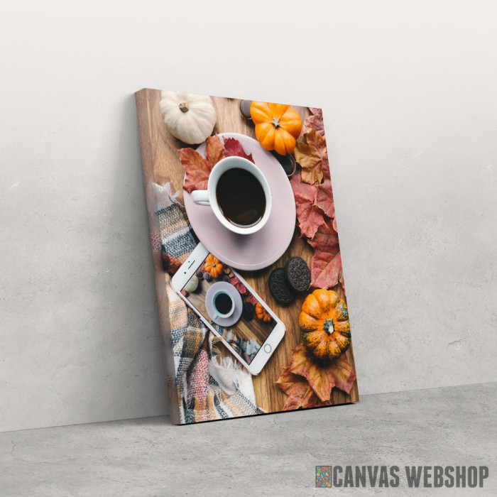 Jesenja Kafa je slika odštampana na kvalitetnom pamučnom platnu koje je zategnuto na ram od bukovog drveta. Slika Jesenja Kafa je dostupna u različitim dimenzijama.