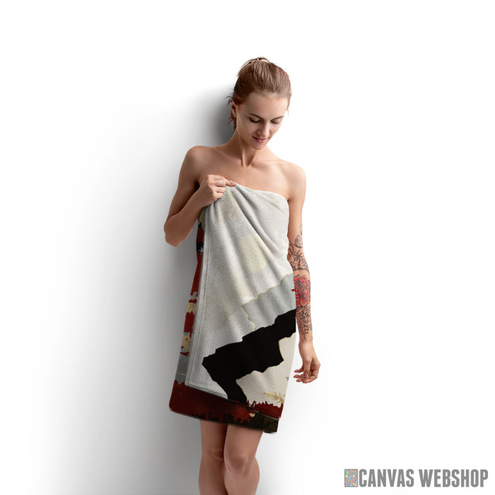 Materijal 60% pamuk (frotir 400g/m2) i 40% poliester (mikrofiber). Štampa je sa prednje strane, odnosno na mikrofiberu, celom površinom. Tehnika štampe je digitalna sublimacija bojama na vodenoj bazi. Urađen je porub po obodu.