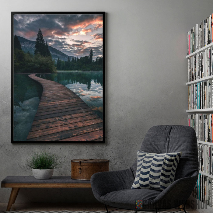 Jezero Dok je poster odštampan na papiru koji uokviruje elegantan drveni ram sa staklom. Uramljeni poster je dostupan u različitim dimenzijama.