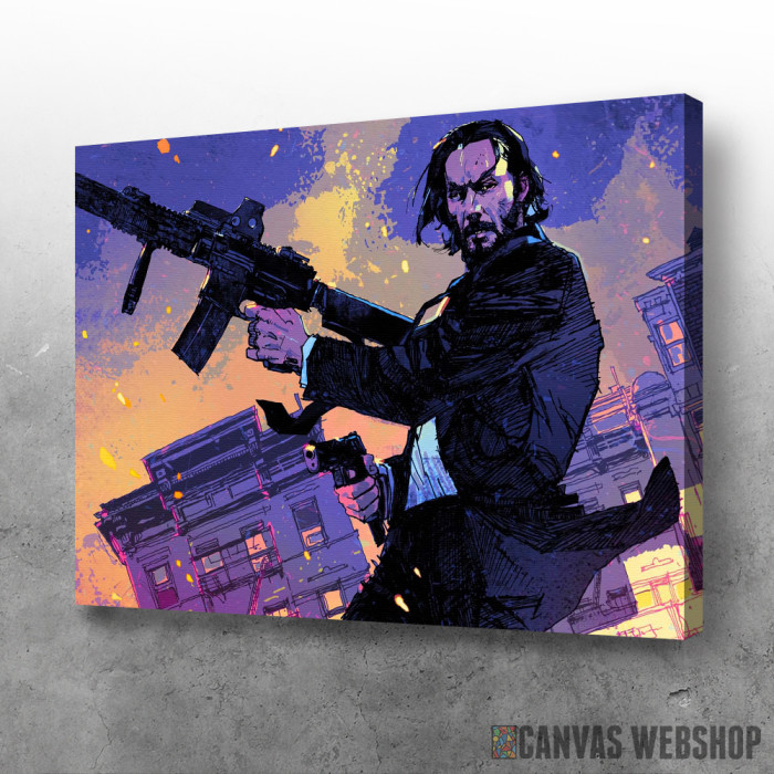 John Wick je slika odštampana na kvalitetnom pamučnom platnu koje je zategnuto na ram od bukovog drveta. Slika John Wick je dostupna u različitim dimenzijama.