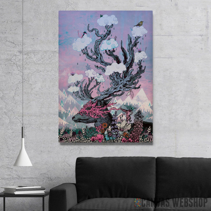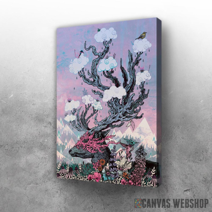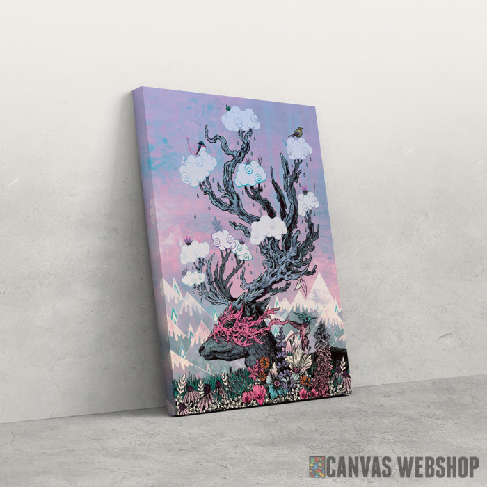 Journeying Spirit (deer) sunset je slika odštampana na kvalitetnom pamučnom platnu koje je zategnuto na ram od bukovog drveta. Slika Journeying Spirit (deer) sunset je dostupna u različitim dimenzijama.