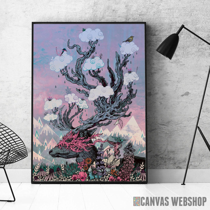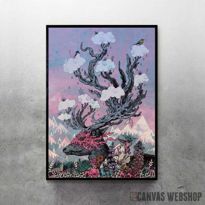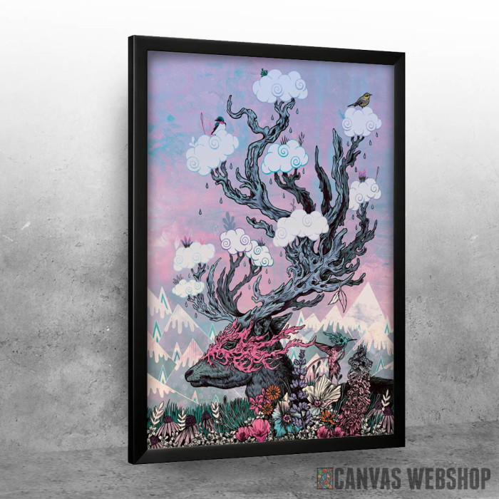 Journeying Spirit (deer) sunset je poster odštampan na papiru koji uokviruje elegantan drveni ram sa staklom. Uramljeni poster je dostupan u različitim dimenzijama.