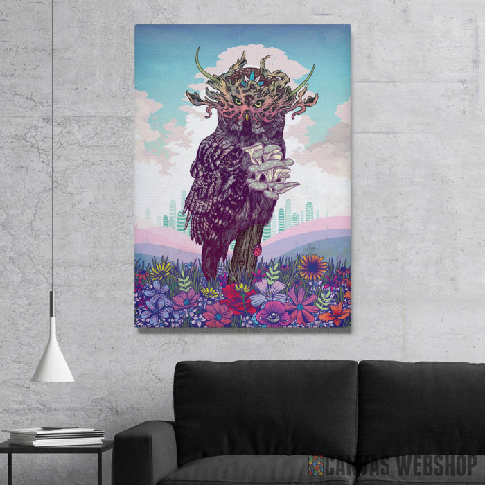 Journeying Spirit (Owl) je slika odštampana na kvalitetnom pamučnom platnu koje je zategnuto na ram od bukovog drveta. Slika Journeying Spirit (Owl) je dostupna u različitim dimenzijama.