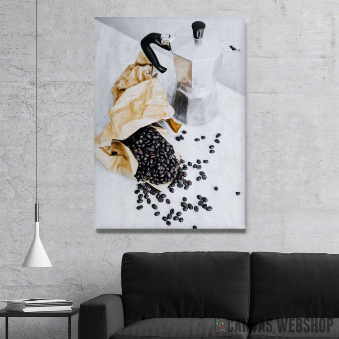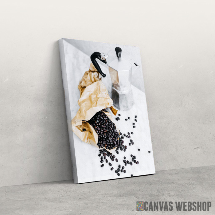 Kafe Komplet je slika odštampana na kvalitetnom pamučnom platnu koje je zategnuto na ram od bukovog drveta. Slika Kafe Komplet je dostupna u različitim dimenzijama.
