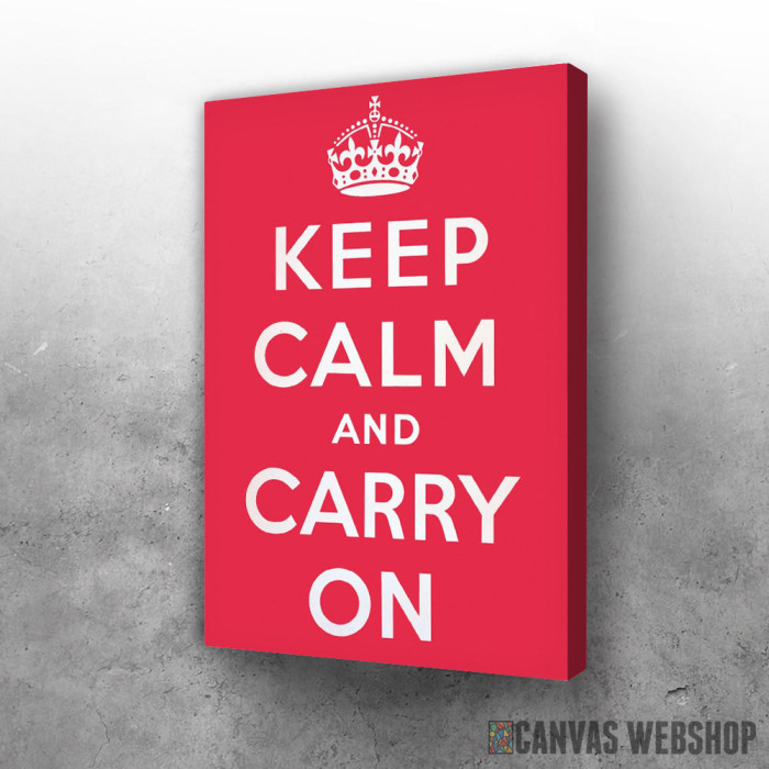 Keep Calm and Carry On je slika odštampana na kvalitetnom pamučnom platnu koje je zategnuto na ram od bukovog drveta. Slika Keep Calm and Carry On je dostupna u različitim dimenzijama.