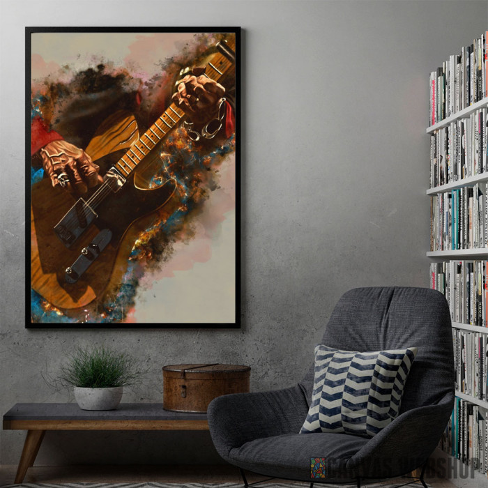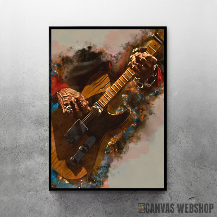 Keith Richards Guitar je poster odštampan na papiru koji uokviruje elegantan drveni ram sa staklom. Uramljeni poster je dostupan u različitim dimenzijama.