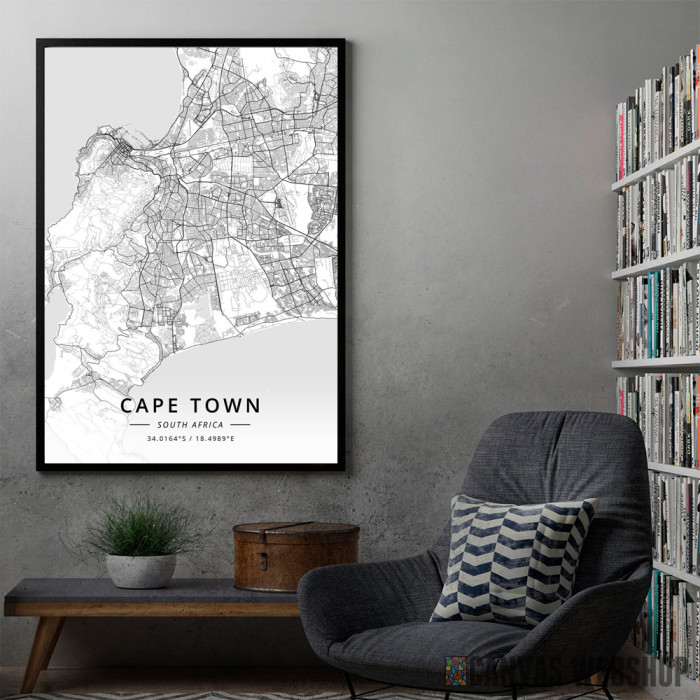 Kejptaun mapa - white je poster odštampan na papiru koji uokviruje elegantan drveni ram sa staklom. Uramljeni poster je dostupan u različitim dimenzijama.