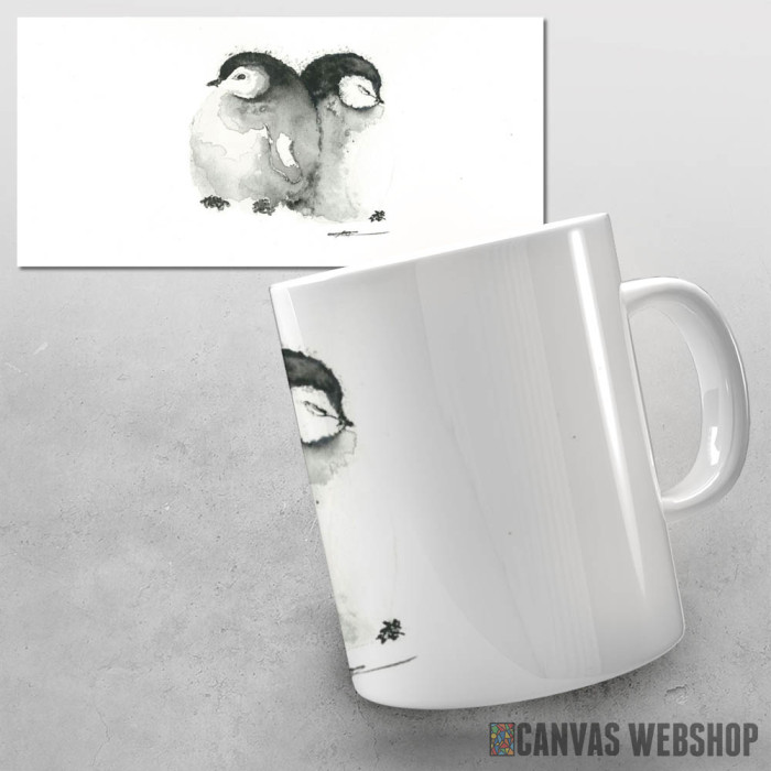 Keramička šolja sa slikom Sestre pingvini.