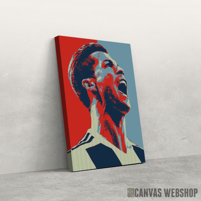 Kristijano Ronaldo - crveno plavo je slika odštampana na kvalitetnom pamučnom platnu koje je zategnuto na ram od bukovog drveta. Slika Kristijano Ronaldo - crveno plavo je dostupna u različitim dimenzijama.