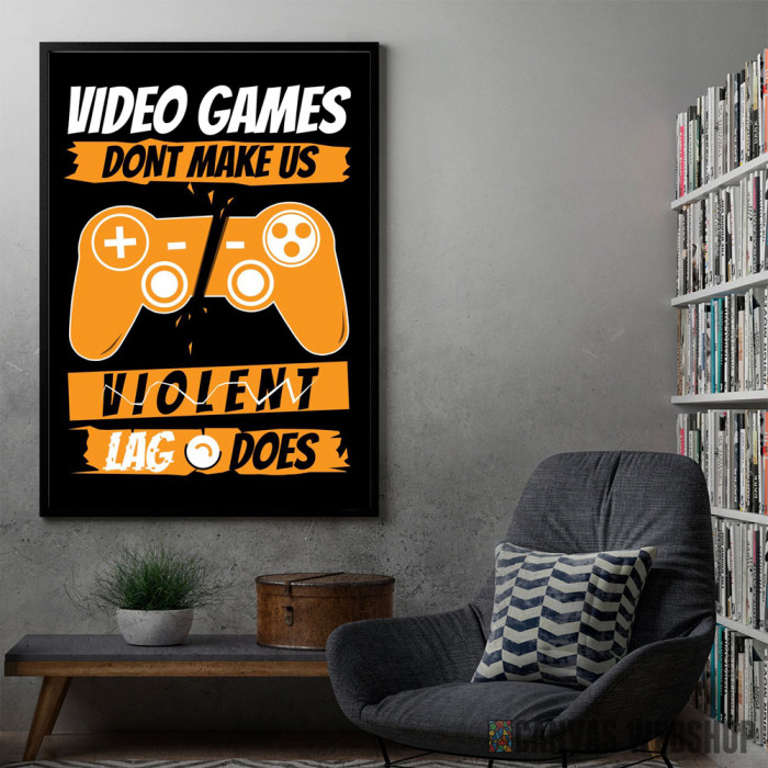 Lag Makes Gamers Violent je poster odštampan na papiru koji uokviruje elegantan drveni ram sa staklom. Uramljeni poster je dostupan u različitim dimenzijama.