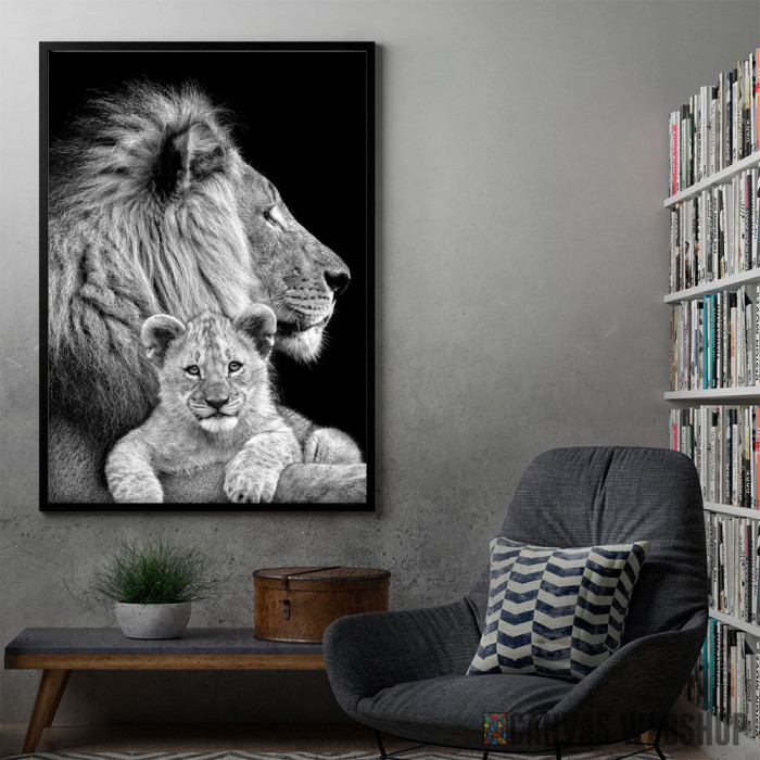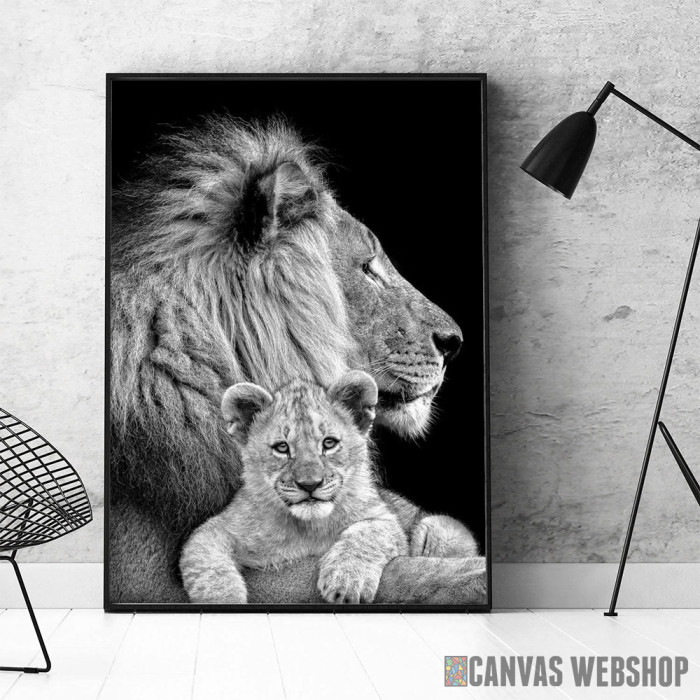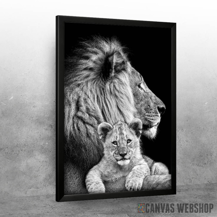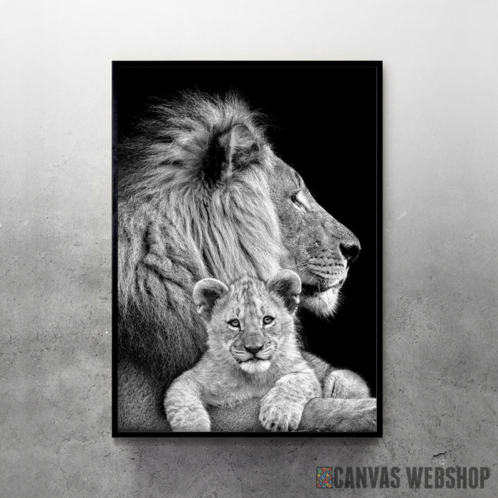 Lav sa mladunčetom je poster odštampan na papiru koji uokviruje elegantan drveni ram sa staklom. Uramljeni poster je dostupan u različitim dimenzijama.