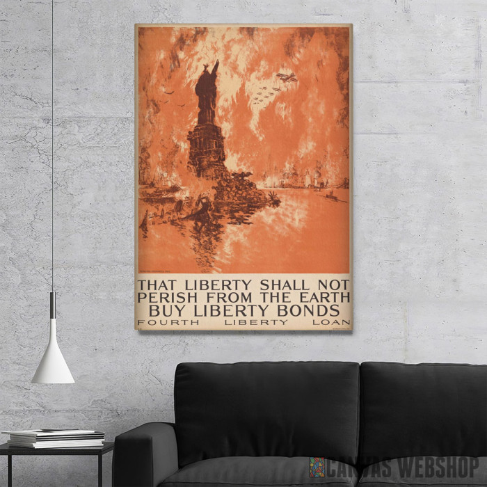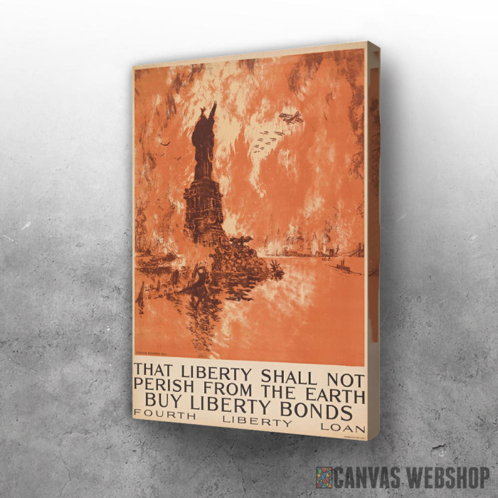 Liberty shall not perish je slika odštampana na kvalitetnom pamučnom platnu koje je zategnuto na ram od bukovog drveta. Slika Liberty shall not perish je dostupna u različitim dimenzijama.