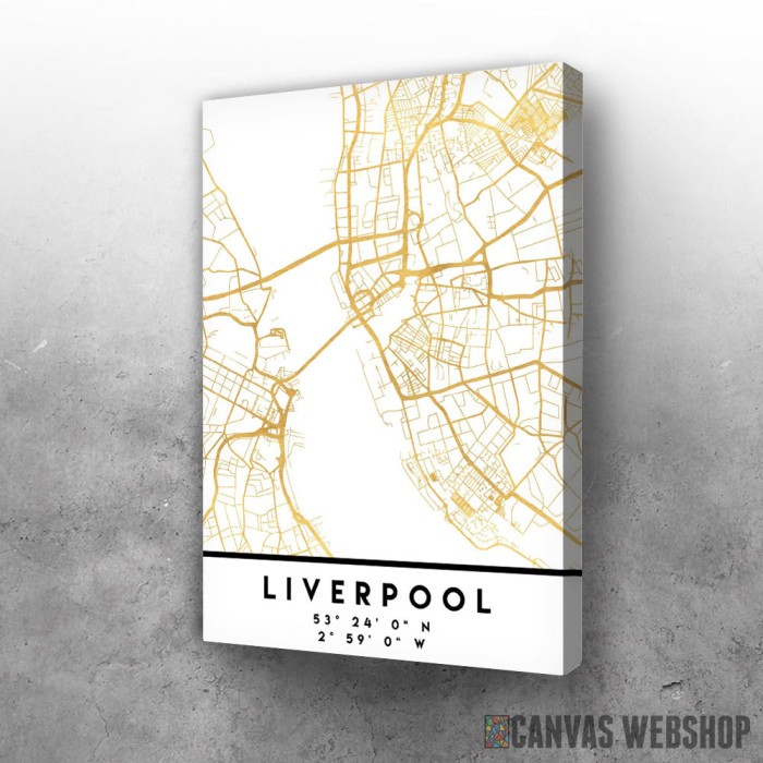 Liverpul mapa - belo zlatno je slika odštampana na kvalitetnom pamučnom platnu koje je zategnuto na ram od bukovog drveta. Slika Liverpul mapa - belo zlatno je dostupna u različitim dimenzijama.