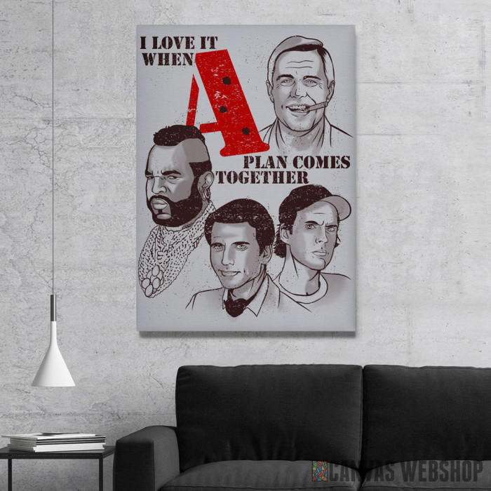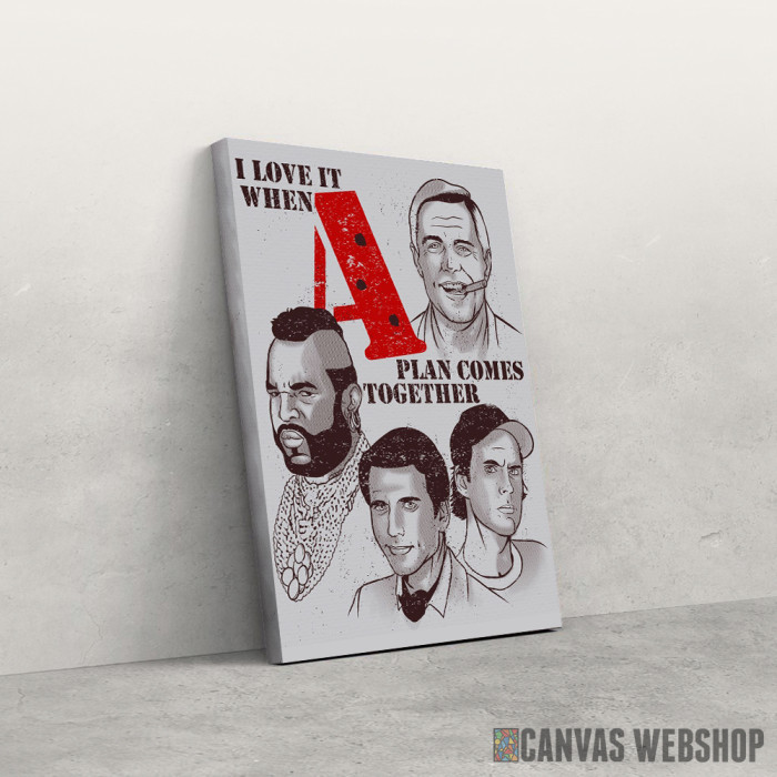 Love it when A plan comes together je slika odštampana na kvalitetnom pamučnom platnu koje je zategnuto na ram od bukovog drveta. Slika Love it when A plan comes together je dostupna u različitim dimenzijama.