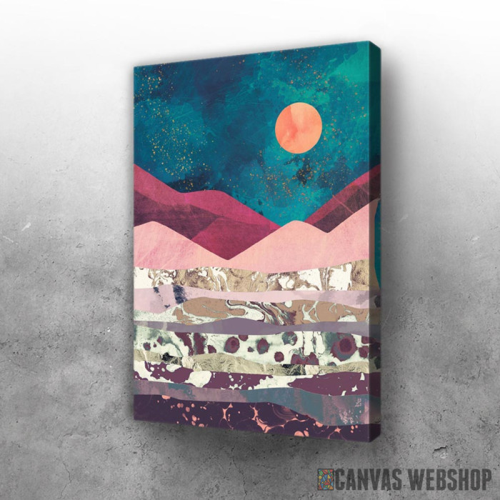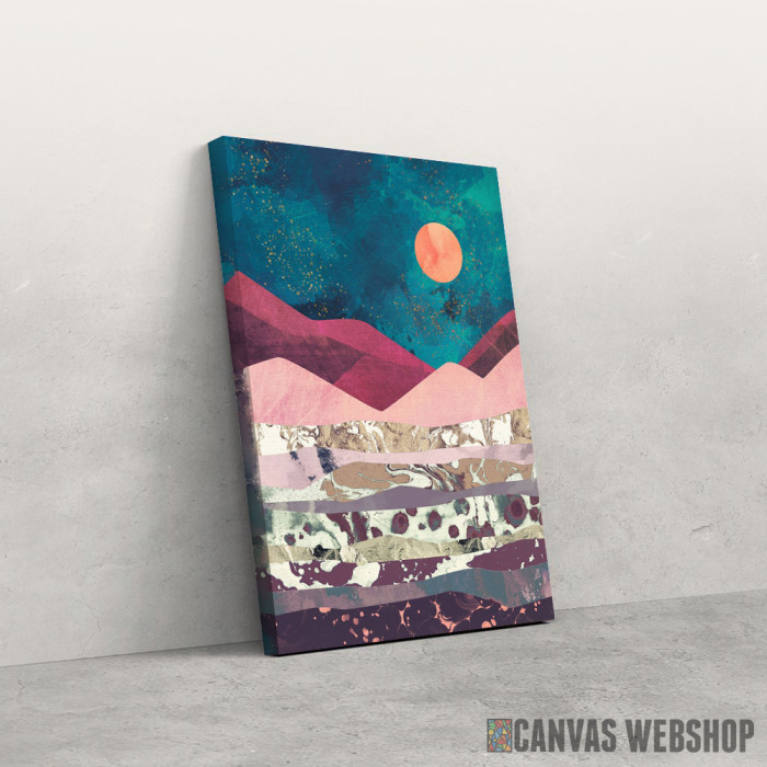 Magenta Mountains je slika odštampana na kvalitetnom pamučnom platnu koje je zategnuto na ram od bukovog drveta. Slika Magenta Mountains je dostupna u različitim dimenzijama.