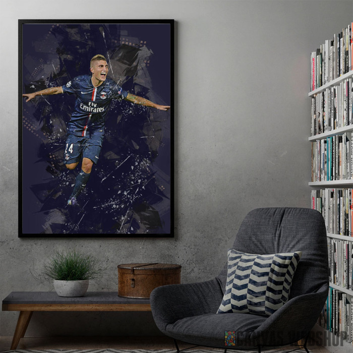 Marco Verratti 2 je poster odštampan na papiru koji uokviruje elegantan drveni ram sa staklom. Uramljeni poster je dostupan u različitim dimenzijama.