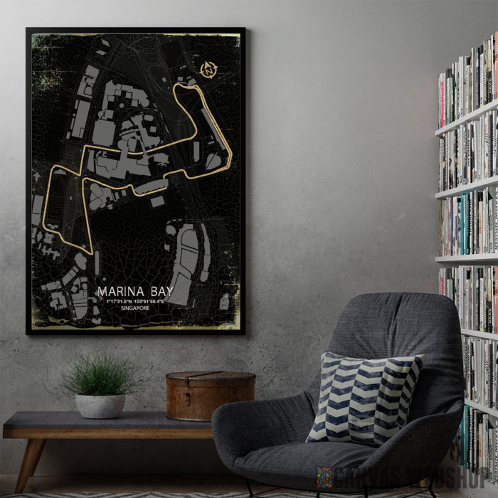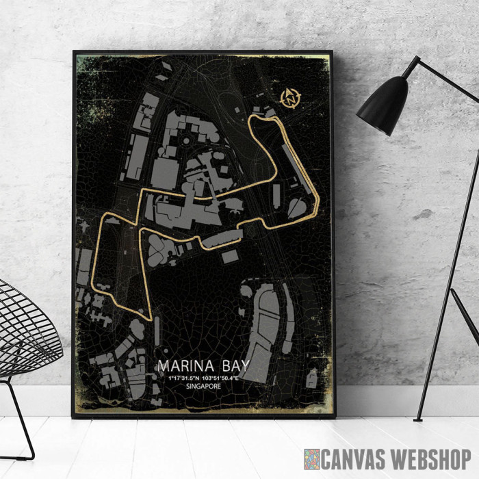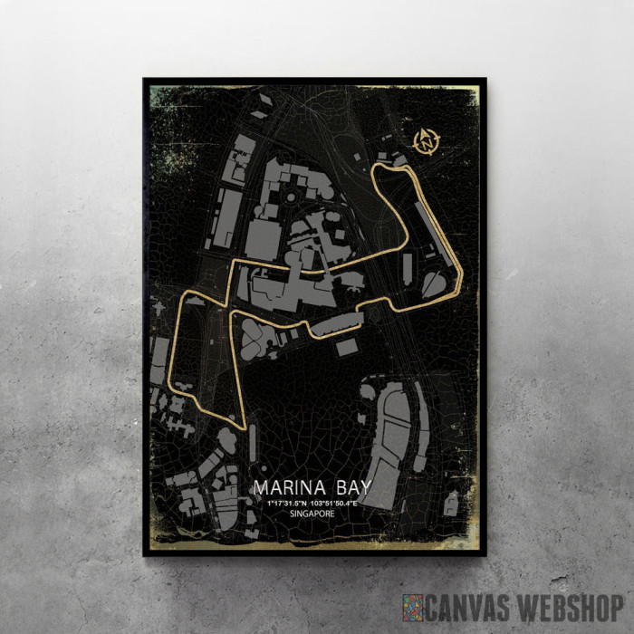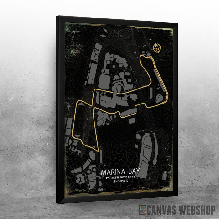 MARINA BAY F1 staza je poster odštampan na papiru koji uokviruje elegantan drveni ram sa staklom. Uramljeni poster je dostupan u različitim dimenzijama.