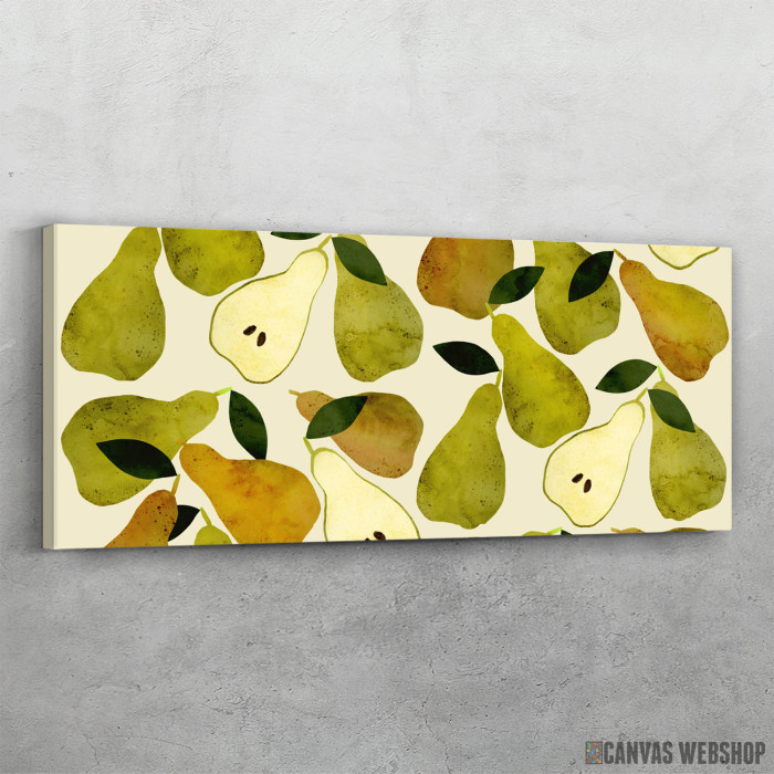 Mediteranske kruske vodene boje je slika odštampana na kvalitetnom pamučnom platnu koje je zategnuto na ram od bukovog drveta. Slika Mediteranske kruske vodene boje je dostupna u različitim dimenzijama.