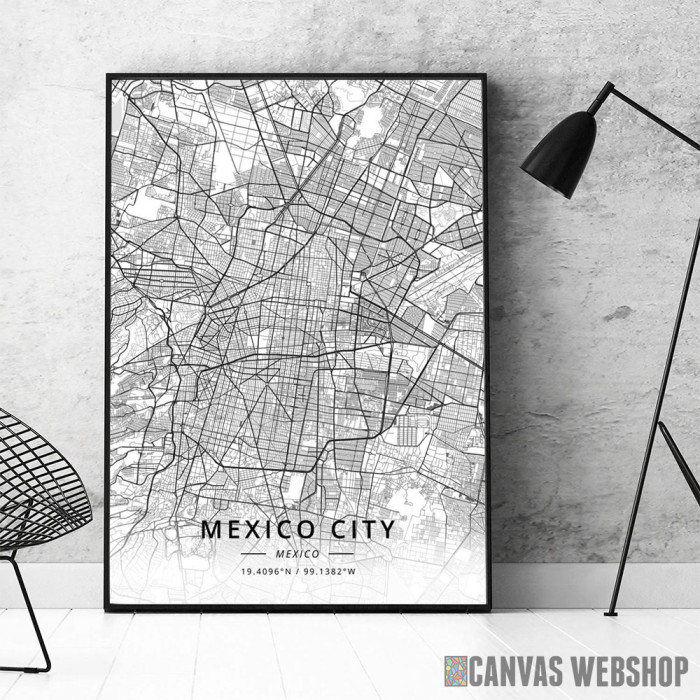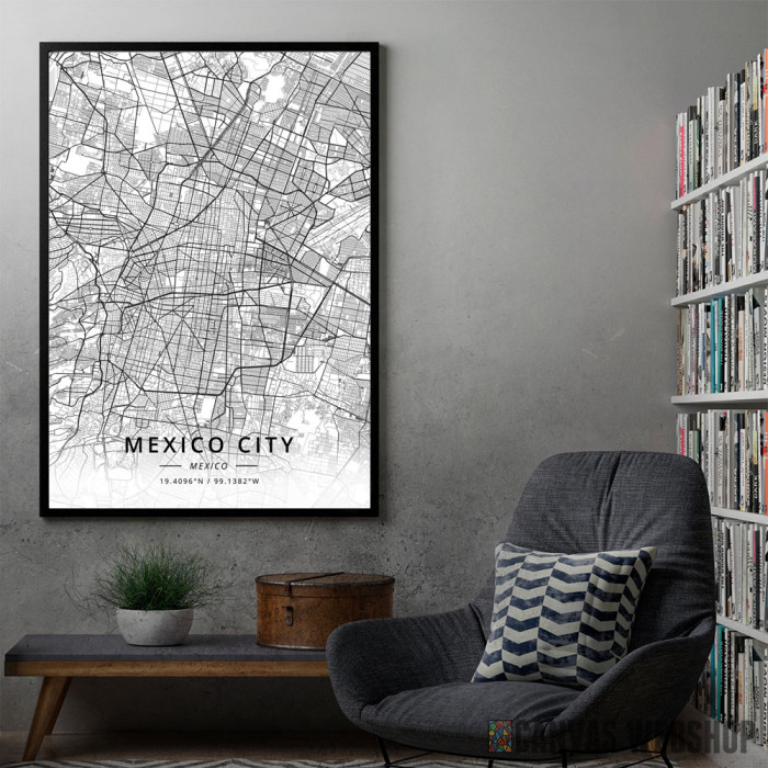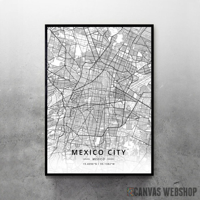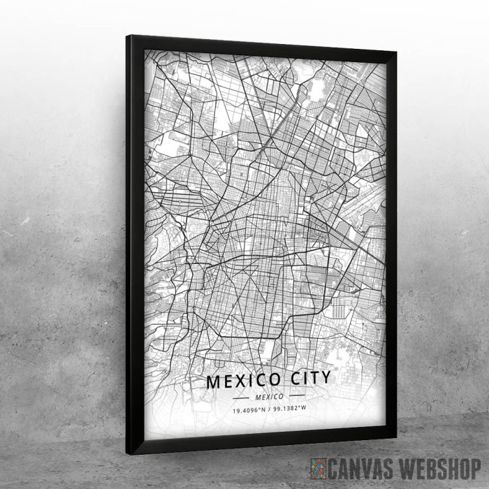 Meksiko siti mapa - white je poster odštampan na papiru koji uokviruje elegantan drveni ram sa staklom. Uramljeni poster je dostupan u različitim dimenzijama.