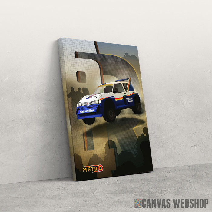 MG Metro 6R4 je slika odštampana na kvalitetnom pamučnom platnu koje je zategnuto na ram od bukovog drveta. Slika MG Metro 6R4 je dostupna u različitim dimenzijama.