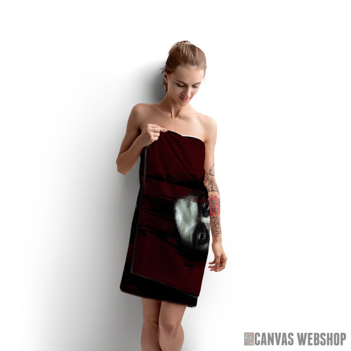 Materijal 60% pamuk (frotir 400g/m2) i 40% poliester (mikrofiber). Štampa je sa prednje strane, odnosno na mikrofiberu, celom površinom. Tehnika štampe je digitalna sublimacija bojama na vodenoj bazi. Urađen je porub po obodu.