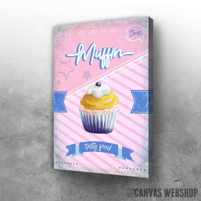 Muffin je slika odštampana na kvalitetnom pamučnom platnu koje je zategnuto na ram od bukovog drveta. Slika Muffin je dostupna u različitim dimenzijama.
