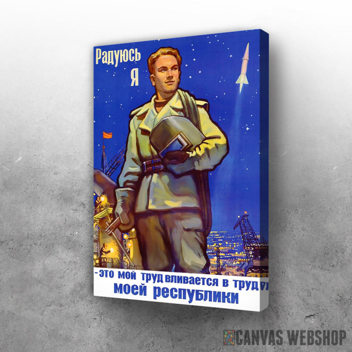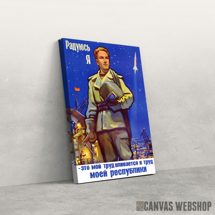 Napredak za moju zemlju je slika odštampana na kvalitetnom pamučnom platnu koje je zategnuto na ram od bukovog drveta. Slika Napredak za moju zemlju je dostupna u različitim dimenzijama.