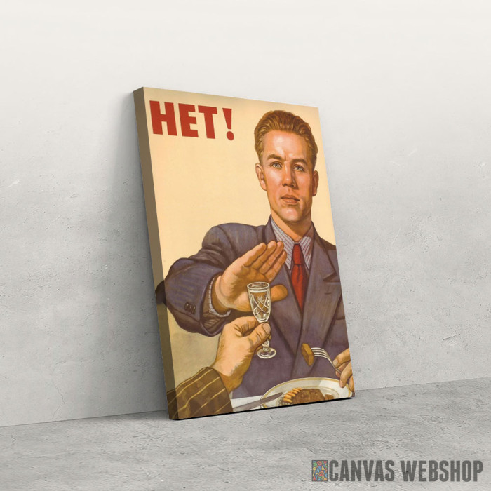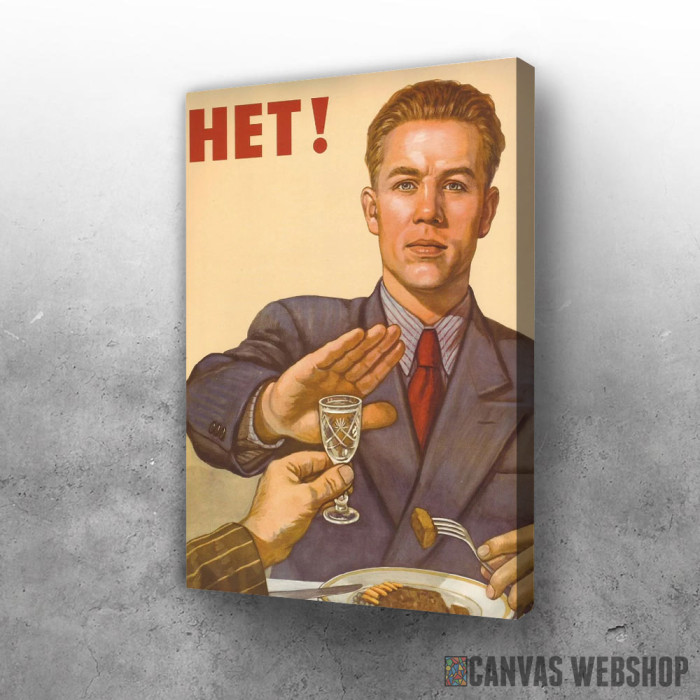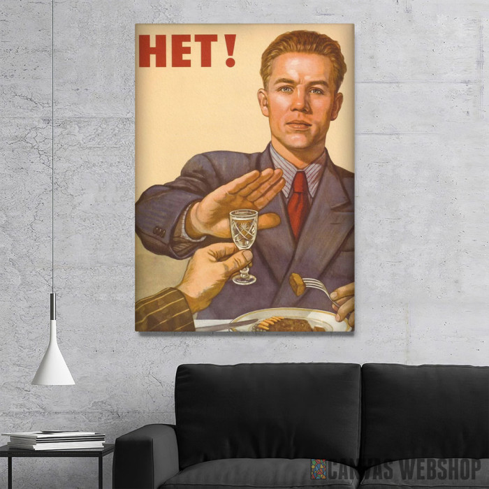 Njet alkoholu je slika odštampana na kvalitetnom pamučnom platnu koje je zategnuto na ram od bukovog drveta. Slika Njet alkoholu je dostupna u različitim dimenzijama.
